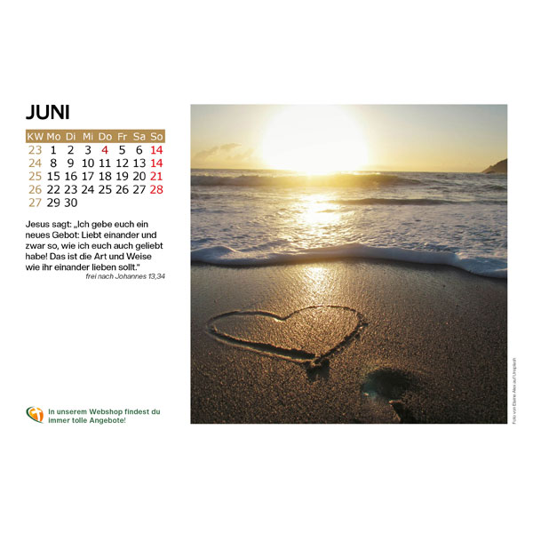 Der Kalender greift das Thema der Jahreslosung auf und lädt dich ein, inmitten eines stressigen Alltags immer wieder mal eine Pause einzulegen, damit deine Seele zur Ruhe kommt. Wunderschöne Bildmotive und Sprüche in Anlehnung an Versen aus der Bibel helfen dir dabei, dich auf das Wesentliche zu besinnen.